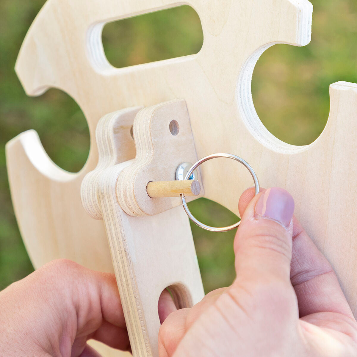 Uma mesa de vinho dobrável e portátil para o exterior, ideal para usufruir de um momento relaxante acompanhado de um bom vinho e da melhor companhia. A solução ideal para não ter de colocar vinho, copos ou aperitivos no chão, evitando insetos, a queda de copos, sujidade, etc. Esta mesa original fabricada em contraplacado é resistente, leve e muito fácil de dobrar e desdobrar, podendo ser facilmente montada, desmontada, transportada e guardada sem ocupar espaço. A mesa pode ser facilmente transportada e montada na praia, no campo, nas montanhas, no jardim, etc. Basta espetar a sua perna única no solo (terra ou areia), tornando-a muito fácil de inserir firmemente no solo e de remover. A sua superfície de apoio dispõe de um orifício para uma garrafa de vinho e de dois orifícios para copos de vinho, deixando espaço para uma pequena tigela de petiscos ou aperitivos. Além disso, tem mais dois orifícios (um na superfície e outro na perna) que servem como pegas para facilitar a sua manipulação (um deles serve igualmente como pega de transporte). A sua limpeza pode ser efetuada de modo rápido e simples.