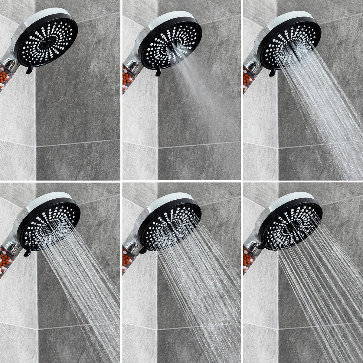 Poupança de água e instalação fácil: esta cabeça de chuveiro com minerais permite poupar água ao aumentar a pressão e ajuda a reduzir o uso de géis e cremes. Instala-se facilmente, desenroscando a tampa do cabo e enroscando-a a mangueira do chuveiro (não incluído).