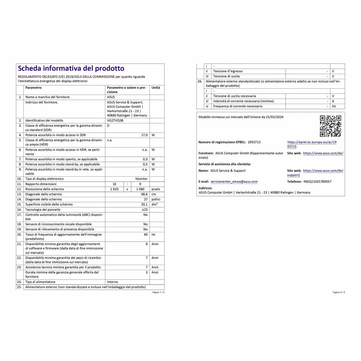 Monitor Asus 90LM0A90-B01170 27" Full HD
